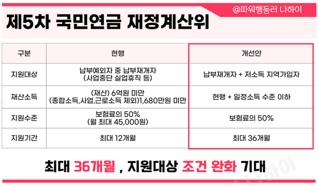 국민연금 지원대상 및 지원 기간 확대 기대중