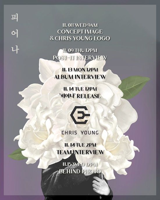 8일 크리스 영 소속사 쇼플레이액터스는 공식 SNS 채널을 통해 크리스 영의 첫 발라드 신곡 '피어나' 프로모션 스케줄을 공개하며 컴백을 예고했다.