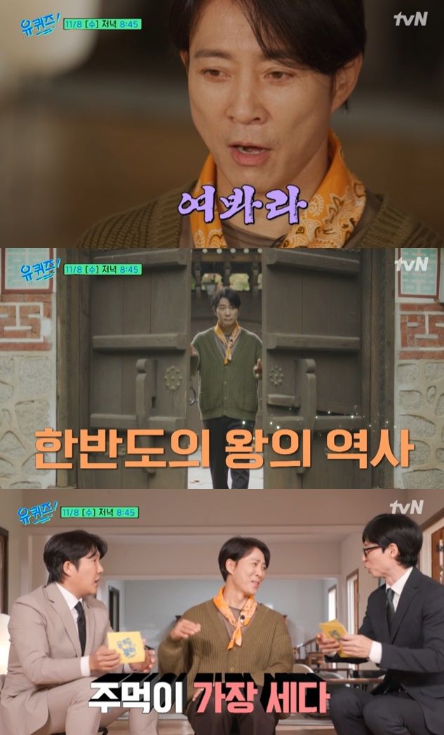 8일 방송되는 tvN '유퀴즈'에는 '사극의 왕' 배우 최수종 자기님이 '유 퀴즈'를 방문해 고려 태조 왕건, 발해 대조영 등 한반도의 역사와 함께 하고 있는 살아있는 왕으로서 풍성한 토크를 나눈다.