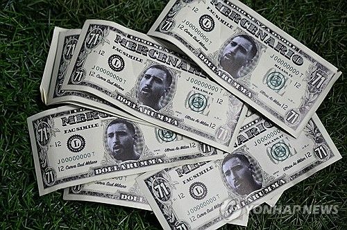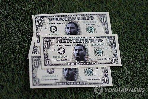 팬들이 경기 전 공개한 가짜 돈다발엔 미국 달러 지폐에 조지 워싱턴 전 대통령 등 미국의 위인 대신 돈나룸마의 얼굴이 새겨져 있다.