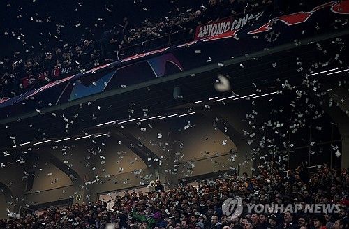 AC밀란 팬들이 8일(한국시간) 산 시로에서 열린 PSG와의 맞대결을 앞두고 유스 출신으로 팀을 떠난 돈나룸마 골키퍼를 향해 경기 전 수많은 가짜 돈다발을 투척했다.