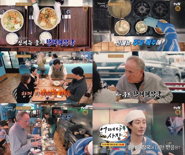그런 가운데, 조인성은 저녁 영업에서 대게 라면을 이을 새로운 메뉴 황태해장국을 처음 선보인다. 황태해장국의 등장과 함께 주문은 폭주한다. 한 손님은 그리웠던 고향의 맛을 기대하며 “칼칼하게 해주세요”라는 특별 요청을 하는가 하면 매운맛에 익숙하지 않은 외국인 손님들도 ‘K-해장국’을 향한 도전 의지를 드러낸다.