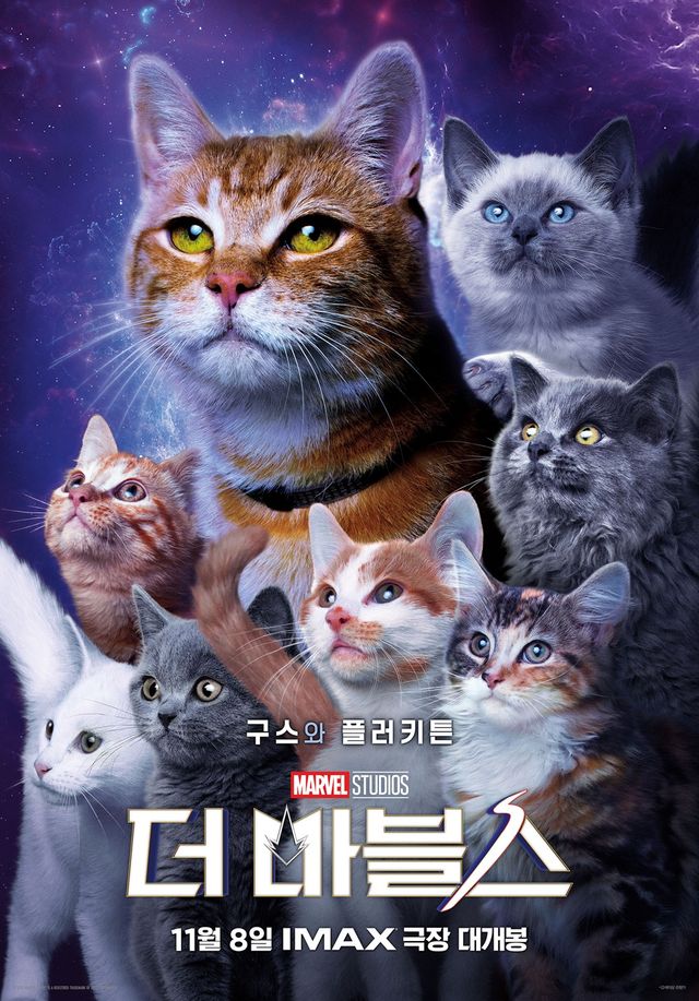 알짜배기 전개, 한국의 미남, 성공한 덕후의 사랑스러운 감정 표현과 귀여운 아기 고양이들. 요즘 사람이라면 싫어할 수 없는 요소로 가득 채워진 트렌디한 마블 영화를 보고 싶다면 후회 없을 '더 마블스'다. 러닝타임 105분. 12세이상관람가. 쿠키 영상은 한 개, 쿠키 오디오도 한 개.