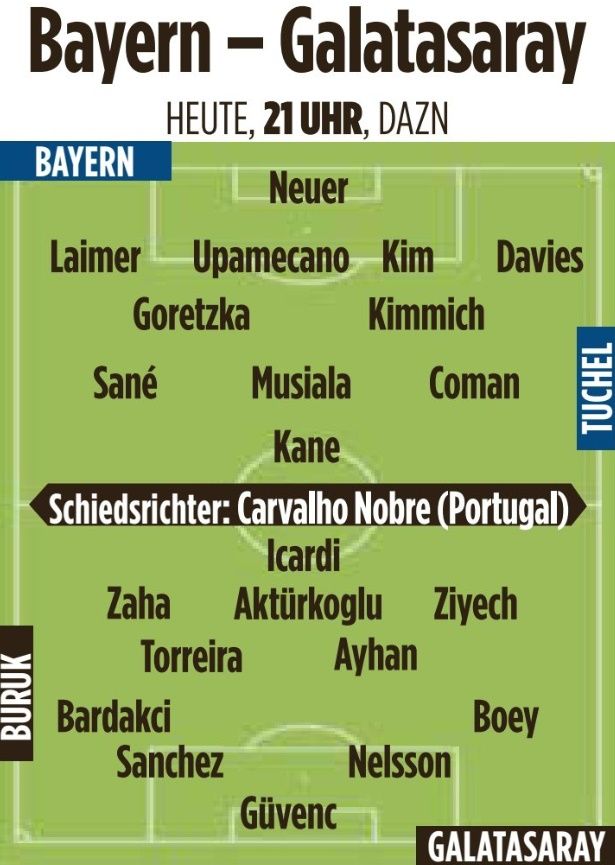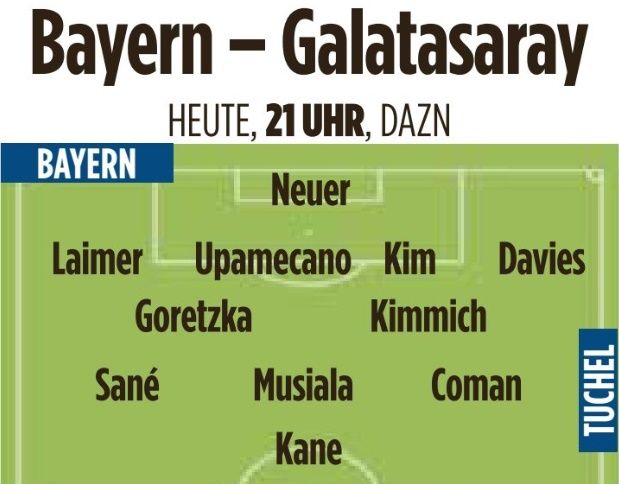 따라서 뮌헨은 갈라타사라이전 때 총력전에 나설 것으로 예상됐다. 독일 유력지 '빌트'도 갈라타사라이전 예상 라인업을 통해 뮌헨이 주축 선수들을 모두 내보낼 것으로 내다봤다.