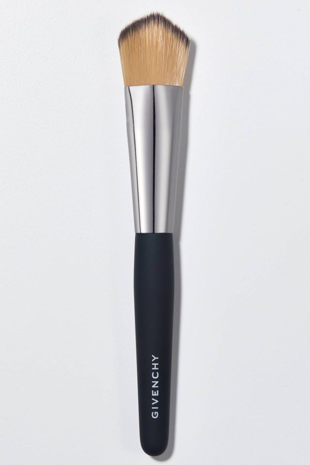 사각형 모양의 납작한 브러시 타입은 파운데이션을 넓게 펴 바르기에 좋다. 브러시 한쪽 면 2분의 1 지점에 파운데이션을 고르게 묻힌 뒤 45도로 세워 볼부터 귀. 턱선 라인까지 슥슥 그어주듯 바른다. 브러시에 남은 여분으로 얼굴 중심을 채우고, 그 뒤에도 제품이 브러시에 남아 있다면 깨끗이 닦아내자. 닦아낸 브러시를 손에 힘을 완전히 뺀 상태에서 90도로 잡고 피부 표면에 닿을 듯 말 듯 살랑살랑 쓸어주면 피붓결 정돈 효과까지 볼수 있다.