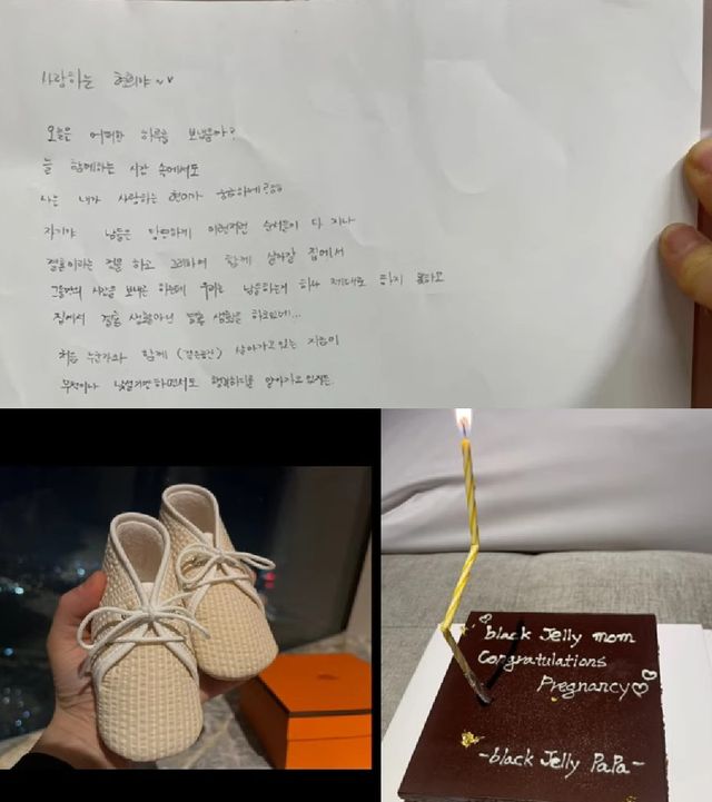 이후 전청조가 남현희가 임신을 했다며 명품 브랜드의 아기 신발을 선물했다. 뿐만 아니라 "블랙 젤리 엄마, 임신 축하해. 블랙 젤리 아빠가"라는 글이 영어로 적혀있어 눈길을 끈다. '블랙 젤리'는 이들이 붙인 태명으로 보인다.