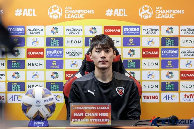 (엑스포츠뉴스 포항스틸야드, 권동환 기자) 포항 스틸러스 미드필더 한찬희가 극적인 역전승 후 MOM(Man of the Match)으로 선정되자 당황함을 감추지 못했다.