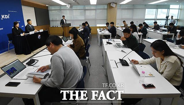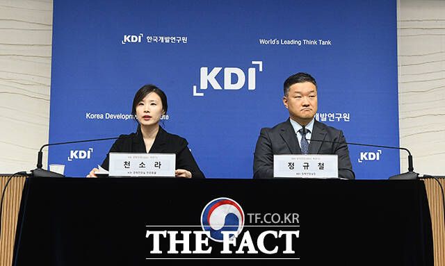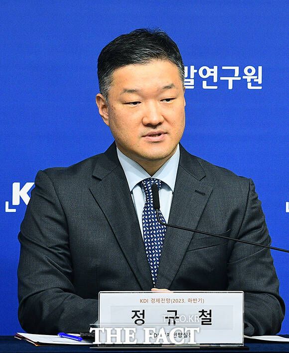 [더팩트ㅣ세종=이동률 기자] 천소라 KDI 경제전망실 전망 총괄(왼쪽)과 정규철 KDI 경제전망실장이 9일 오전 세종시 정부세종청사에서 2023년 하반기 KDI 경제전망을 발표하고 있다.