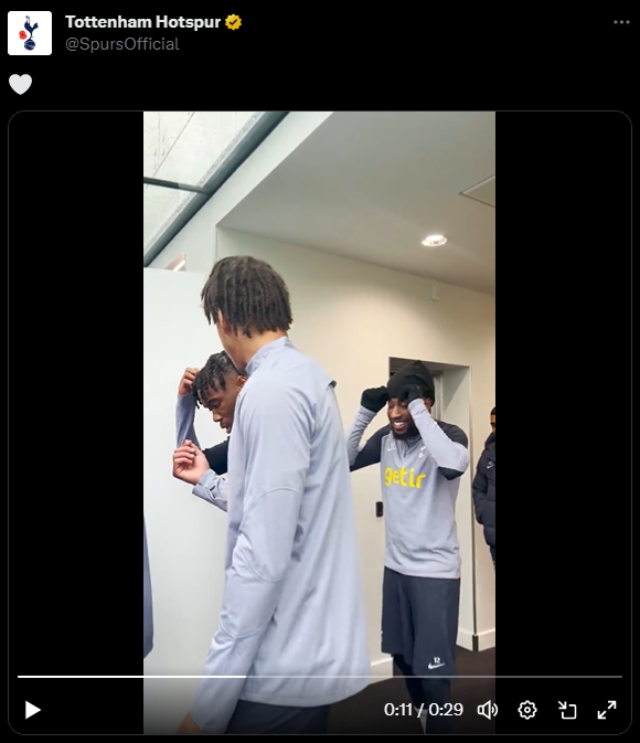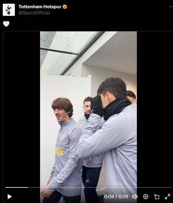 해당 영상에는 브라이언 힐, 에밀 호이비에르, 팀의 유망주 알레호 벨리즈와 장난을 치고 있는 손흥민, 에메르송 로얄까지 많은 토트넘 선수들이 보였지만 매디슨 모습은 찾아볼 수 없었다.