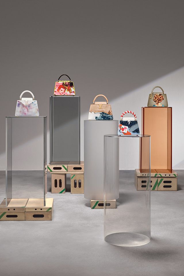인상파 화가들과 친분을 쌓으며 영감을 주고받은 루이 비통 가문의 뿌리 깊은 예술적 태생 때문일까? 루이 비통은 1920년대부터 장식미술을 바탕으로 예술가들과 쇼윈도 전시 작업을 펼친 이후로 수많은 아티스와 협업을 이어왔다. 하우스의 역사를 관통하며 선명하게 이식된 이 전통은 예술가의 재기 발랄한 상상력과 하우스의 헤리티지가 절묘하게 융합되어 완전히 새로운 예술품을 탄생시켰다. 이는 2013년 출시한 이후 꾸준히 사랑받는 ‘카퓌신(Capucines)’ 백으로 이어졌다. 1854년 파리의 루뇌브 드 카퓌신 거리에 문을 연 루이 비통의 첫 매장에 경의를 표하며 탄생한 카퓌신 백은 시대를 초월한 실루엣으로 예술적인 ‘아티카퓌신(Artycapucines)’ 협업의 바탕이 된다. 2019년 시작해 매해 관심을 모은 아티카퓌신 컬렉션은 현대미술 작가들이 카퓌신 백을 캔버스 삼아 자신만의 독특한 비전을 담아내며 저마다의 예술혼과 창의성, 루이 비통 아틀리에의 전문성과 장인정신을 담은 현대미술 작품을 선보여왔다. 지금까지 알렉스 이스라엘(Alex Israel), 베아트리스 밀랴지스(Beatriz Milhazes), 우고 론디노네(Ugo Rondinone) 등 동시대를 대표하는 29명의 아티스트가 함께했고, 예술가와의 꾸준한 협업을 기반으로 한 아티카퓌신 컬렉션은 예술적 창의성과 장인정신에 대한 헌신의 정수를 보여주며 여성성을 궁극적으로 표현하는 수단으로 자리매김했다. 5인의 현대미술 작가와 함께한 새로운 아티카퓌신 컬렉션은 컬렉션 론칭에 이은 다섯 번째 프로젝트로 빌리 장게와, 에바 유스키에비치, 라이자 루, 투르시치와 밀레 듀오, 왕쯔핑이 참여하며 저마다 품은 독특한 비전을 그려냈다. 빌리 장게와(Billie Zangewa)는 남아프리카공화국에서 활동하는 말라위 출신 작가로, 불완전한 실크 조각을 의도적으로 패치워크해 풍경화와 초상화 작업을 하는 작가다. 그의 아티카퓌신은 자신의 아들이 등장하는 2020년 작 ‘수영 수업(The Swimming Lesson)’을 재해석한 것으로, 트롱프뢰유 인쇄 기법과 화려한 엠브로이더리, 바늘이 지나간 자리가 고스란히 드러나는 수작업 스티칭으로 구현했다. 에바 유스키에비치(Ewa Juszkiewicz)는 독특하고 초현실적인 2021년 작 ‘빨간 머리(Ginger Locks)’를 아티카퓌신으로 재탄생시켰다. 폴란드 작가로 서양 예술 작품에 지배적으로 등장하는 여성의 정체성과 그 억압된 존재감을 지속적으로 탐구해온 작가의 그림 위에 수놓은 황금색 진주 스트링은 그의 그림이 간직한 고유한 아름다움을 한층 더 부각시킨다. 미국 작가로 1995년 작 ‘부엌(Kitchen)’을 비롯한 대형 조각 작업과 비즈를 활용하는 작업 방식으로 잘 알려진 라이자 루(Liza Lou)의 아티카퓌신은 부드러운 가죽에 섬세하고 아름다운 질감의 비즈 작업을 엠보싱 공법으로 구현하고 파스텔 색상으로 섬세하게 인쇄한 뒤 백에 감싸 조형미를 담아냈다. 프랑스와 세르비아 출신 예술 듀오인 투르시치(Tursic)와 밀레(Mille)는 그들이 지속적으로 탐구해온 현대사회의 이미지 과부하라는 주제를 카퓌신 백에 녹여냈다. 이들의 시그니처인 꽃 패널 형태로 재창조한 아티카퓌신은 2021년 작 ‘애정(Tenderness)’의 프레임으로 변모했고, 화려한 자수와 다채로운 색, 그을린 시더우드 핸들과 LV 로고로 독특함을 더했다. 왕쯔핑(Ziping Wang)은 지금까지 공개된 컬렉션 중 가장 작은 미니 아티카퓌신 백을 완성했다. 그의 아티카퓌신은 달콤한 사탕 모티프의 핸들 가죽 패치워크와 밝고 비비드한 색상의 나뭇조각을 표면에 붙이는 상감 기법(marquetry)으로 생동감 있게 표현해 시각적으로 강렬한 메시지를 전한다. 새로운 아티카퓌신 컬렉션은 2백 개 한정 수량 에디션으로 각 가방을 위해 특별 디자인한 선물 포장 박스와 함께 2023년 10월 13일 전세계에서 동시 공개했다.