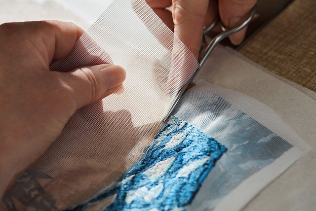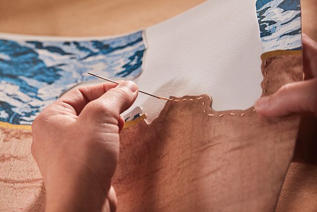 카퓌신 백은 작은 사이즈로도 출시됩니다. 가방의 크기가 제작 방식에도 영향을 미쳤나요? 카퓌신 가방은 저희가 목판 위에 그린 가장 작은 그림과 정확히 일치합니다. 몇 가지 요소는 작은 목판 그림을 제작하는 과정에서 그대로 따왔어요. 저희가 작품이나 전시를 준비할 때와 같은 과정을 거쳐 이 작품을 만들었습니다. 먼저 시험 버전을 만든 뒤 여러 요소를 결합하는 방식으로요.