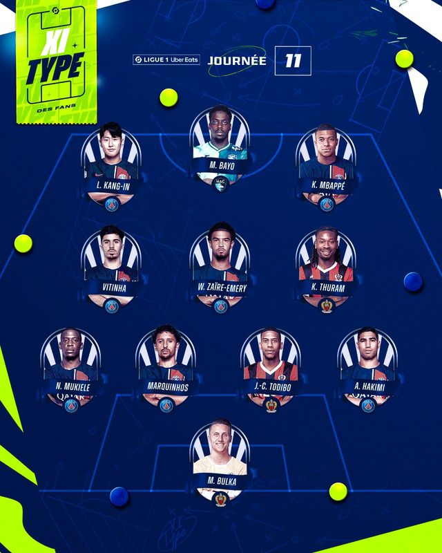 해당 활약을 팬들도 인정하며 이번 11라운드에서도 이강인을 이주의 팀에 선정한 것으로 보인다. 이강인 외에도 PSG 선수 중 음바페, 비티냐, 워렌 자이르-에메리, 노르디 무키엘레, 마르퀴뇨스, 아슈라프 하키미 등 총 7명의 선수가 이주의 팀에 이름을 올렸다.