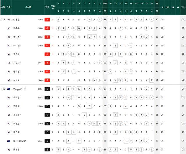 ▲LG 시그니처 플레이어스 챔피언십 1라운드 순위