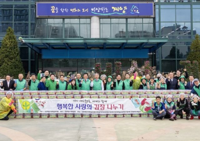 [파이낸셜경제=김영란 기자] 인천시 계양구는 9일 구청 남측광장에서 계양구새마을회, 새마을협의회, 새마을부녀회, 직장협의회 새마을지도자 등 50여 명이 참여한 가운데 ‘사랑의 김장 나누기’행사를 진행했다.