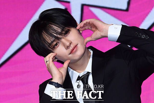 그룹 스트레이키즈의 아이엔이 10일 오전 서울 영등포구 콘래드 서울 호텔에서 열린 미니 앨범 '樂-STAR(락-스타)' 발표 기념 간담회에 참석해 포즈를 취하고 있다. /서예원 기자