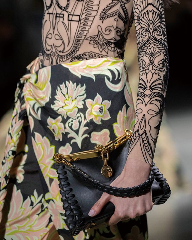 ‘Nowhere’의 무한한 가능성을 구현한 결과물이다. 한편 에트로의 장기인 액세서리 라인도 새 시즌 컬렉션의 완성도를 높이는 조력자 역할을 훌륭하게 해냈다. 아이코닉한 프린트와 생동감 넘치는 컬러가 돋보이는 백과 슈즈부터 볼드한 네크리스, 눈을 가린 여신 형상의 이어링은 많은 생각과 고민 대신 본능과 상상력에 집중하길 원하는 듯하다.