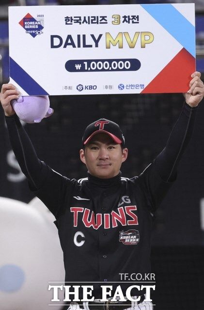 10일 2023 한국시리즈 3차전 9회 초 재역전 3점포...8-7 역전승 '수훈갑'