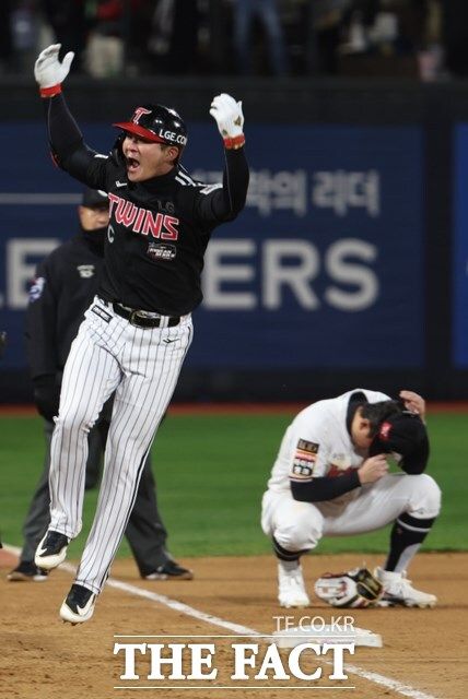 [더팩트 | 박순규 기자] LG 베테랑 오지환(33)이 극적인 홈런으로 29년 만의 한국시리즈 우승을 가능성을 높였다. 1승1패 후 우승의 관문으로 여겨지는 3차전에서 드라마 같은 재역전 3점포를 쏘아올리며 우승 갈증에 목마른 LG팬들을 춤추게 했다.