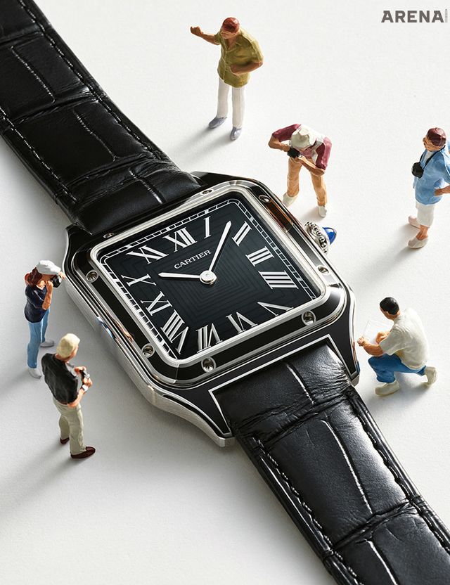 오리지널 산토스 워치의 독창적인 캐릭터를 유지하면서 슬림한 블랙 케이스를 탑재해 우아하게 다듬었다. 케이스 백에는 최초의 손목시계 제작에 영감을 준 알베르토 산토스 뒤몽의 자필 서명을 각인했다.