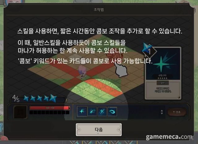 이런 라이트함이 강조되는 부분이 마나 시스템이다. 게임은 유명 온라인 카드게임 ‘하스스톤’과 유사한 개수 방식의 마나 시스템을 적용했다. 턴마다 사용할 수 있는 마나가 하나씩 늘어나며, 강력하고 마나를 많이 소모하는 필살기가 5마나를 소모한다. 또한 다양한 스킬을 카드와 덱빌딩 형식으로 제작해 다양한 스킬을 원하는 대로 선택할 수 있도록 전략성을 갖췄다.