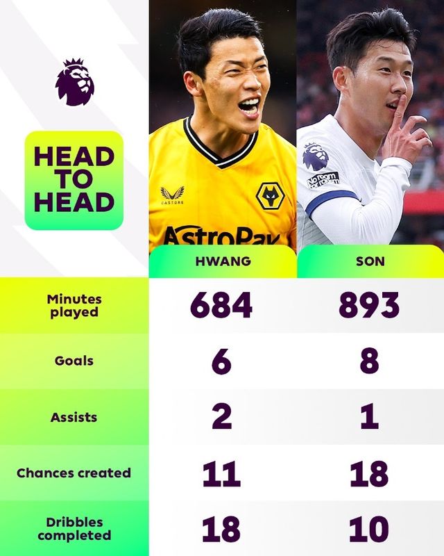 프리미어리그도 SNS을 통해 손흥민과 황희찬의 스텟을 비교하면서 시즌 첫 '코리안 더비'를 주목했다. 그러면서 최근 수비진에 부상자가 속출한 토트넘이 기세가 매서운 황희찬을 막을 수 있을지 여부도 주시했다.