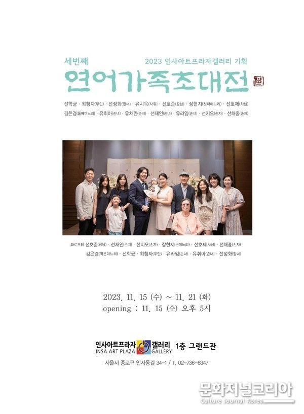 그는 "또한 차남과 며느리는 방송연예분야에 종사하여 연어가족 초대전을 더욱 빛내주고 있다. 아울러 셋째동생이 전각과 서예를 수년간 천착(穿鑿)시켜, 연어가족전에 동참하게 되어 더욱 더 기쁜 일이 아닐 수 없다"는 감회를 전했다.