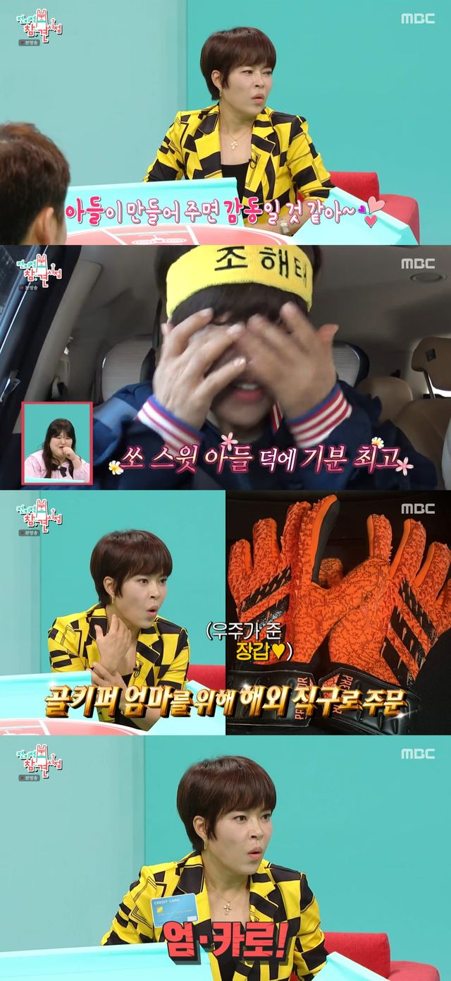 이어 "끝에 항상 사랑한다는 말을 한다. 아들이 군대에 있었는데 비싼 골키퍼 장갑을 보내줬다"고 덧붙였다. 그러면서 "엄카(엄마 카드)로 샀다. 내 카드로 주문했더라"라고 밝혀 폭소케 했다.