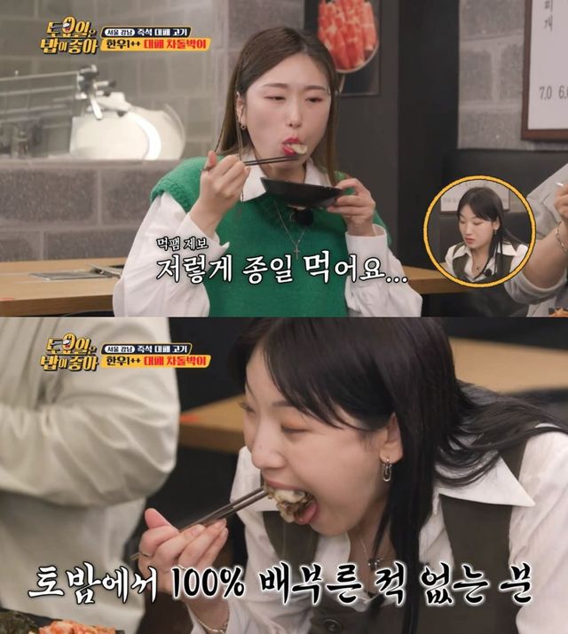 개인 사정으로 인해 자리를 비운 박나래 대신 빈자리를 채운 유튜버 아미는 같은 먹방 유튜버 히밥과 함께 거침없는 먹방을 선보였다.
