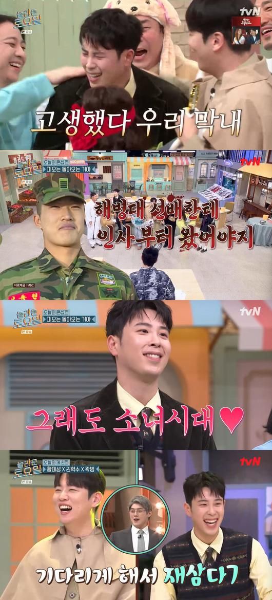 특히 해병대 선배인 김동현은 "선배한테 전역 인사도 안 왔다"며 서운함을 드러냈고, 피오는 즉각 해병대식 인사를 해 분위기를 띄웠다.