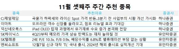 12일 금융투자업계에 따르면 하나증권은 이번주 추천 종목으로 CJ제일제당, 이마트, 덕산네오룩스를 제시했다.