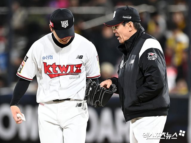 여기에 시즌 내내 견고함을 자랑했던 '클로저' 김재윤마저 흔들리고 있다. 플레이오프에서는 두 차례 등판해 모두 안정적인 투구로 세이브를 수확했던 반면 한국시리즈 2~4차전에서는 3이닝 4피안타(2피홈런) 2사사구 1탈삼진 5실점으로 크게 부진했다. 특히 4차전에서는 코칭스태프가 조금이나마 부담을 덜어주기 위해 경기 중반에 김재윤을 투입했는데, 오히려 이게 독이 되면서 LG와 KT의 격차가 더 벌어졌다.