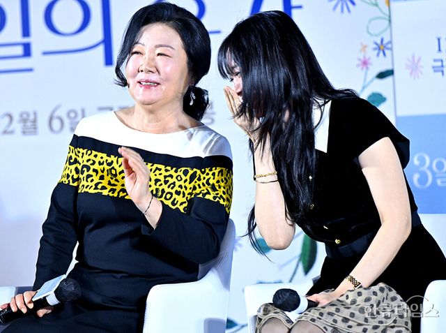 배우 김해숙, 신민아가 13일 오전 서울 용산구 CGV 용산아이파크몰에서 열린 영화 '3일의 휴가' 제작보고회에 참석하고 있다.