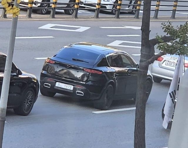 측면에서 촬영한 사진을 보면 제네시스 GV60과 유사한 디자인 포인트가 있다는 해석도 나온다.