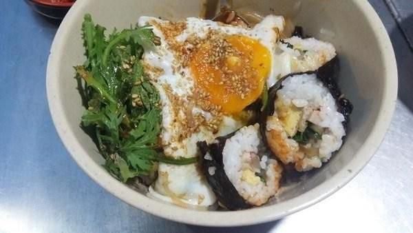 비빔김밥의 가격은 4천원으로 김밥과 계란 당면 등 재료들을 넣어 고추장과 함께 비벼 먹는 음식이다.