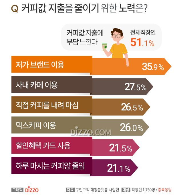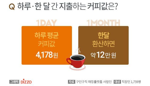 직장인들이 커피를 마시는 이유와 커피값 지출 현황, 커피값 지출 비용을 줄이기 위한 노력을 살펴보자.