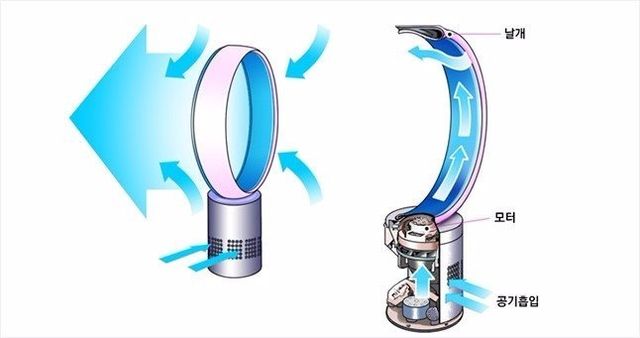 이런 날개형 선풍기는 아이들이 다칠 수도 있고 디자인적으로도 예쁘지 않아 최근 출시된 날개없는 선풍기를 사용하는 사람들이 늘고 있다.