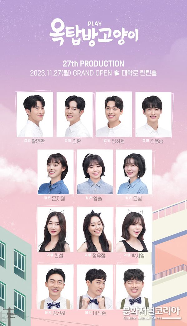 새롭게 선보이는 뉴 캐스트로 더욱 탄탄해진 연극 '옥탑방고양이' 의 27차 프로덕션 티켓 오픈은 11월 16일 오전 11시 인터파크 티켓에서 진행되며, 오는 11월 27 일부터 대학로 틴틴홀 공연장에서 만날 수 있다.