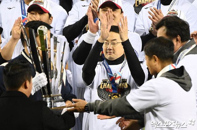 29년 만에 우승을 차지한 LG의 구단주라는 기쁨을 만끽한 구광모 회장은 시상식이 끝난 뒤에는 선수단에 '무대'를 내주고 그라운드를 떠났다.