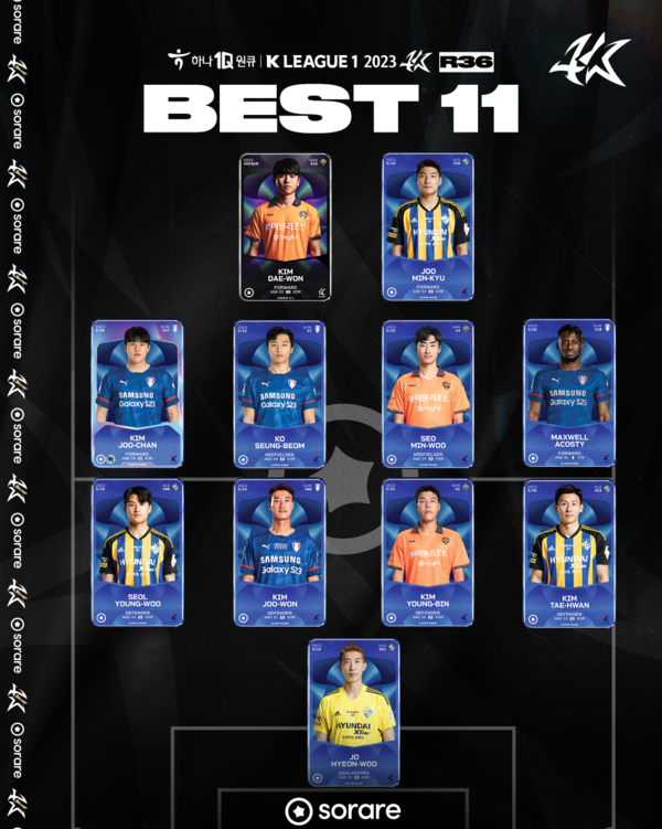 K리그1 36라운드 베스트11에도 수원 선수들이 다수 포진했다. 김주찬, 고승범, 아코스티, 김주원이 이름을 올렸다. 포항스틸러스를 3-2로 제압한 울산현대도 주민규, 설영우, 김태환, 조현우 등 4명을 배출했다. 나머지는 김대원을 비롯해 서민우, 김영빈 등 강원 선수들이었다.