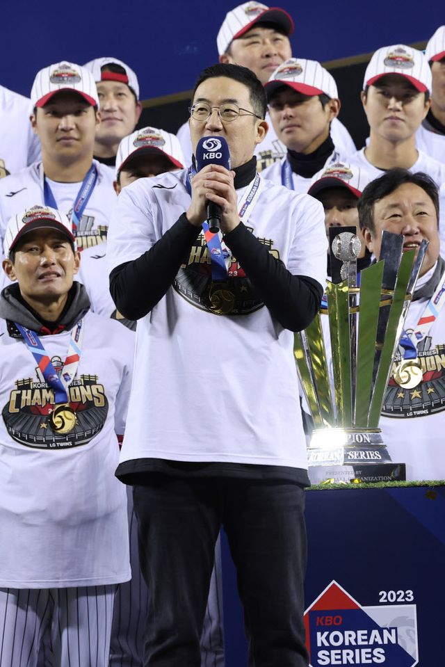 이어 “오늘의 승리는 여기 계신 모든 분과 LG를 사랑해준 모든 분이 함께 일군 것”이라며 “우승의 기쁨을 만끽하시라. 2023년 챔피언은 LG 트윈스다. 무적 LG 파이팅”이라고 외쳤다.