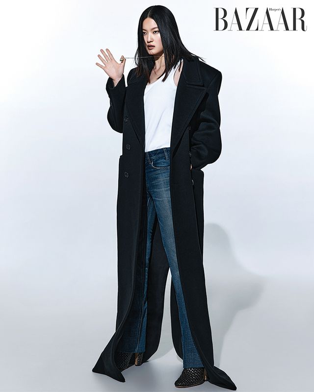 암흑의 코트를 선택했다면 순백 이너로 힘을 실어라. 코트 기장이 발끝을 넘는 만큼 팬츠의 길이도 철저히 계산할 것.