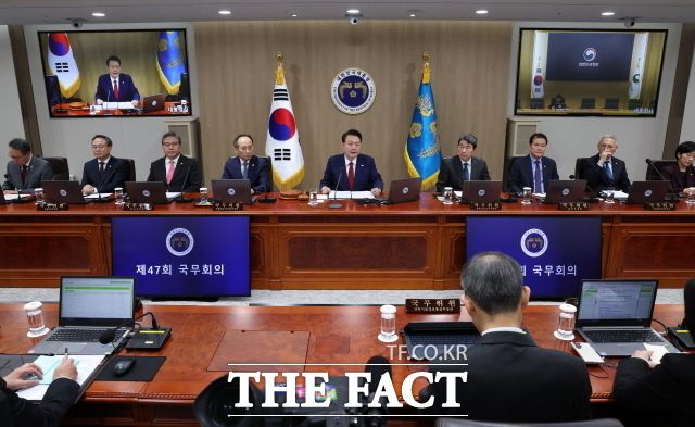 윤 대통령은 이날 오전 용산 대통령실에서 제47회 국무회의를 열고 "노사는 법치의 토대 위에서 대화하고 협력해야 한다"고 강조했다.