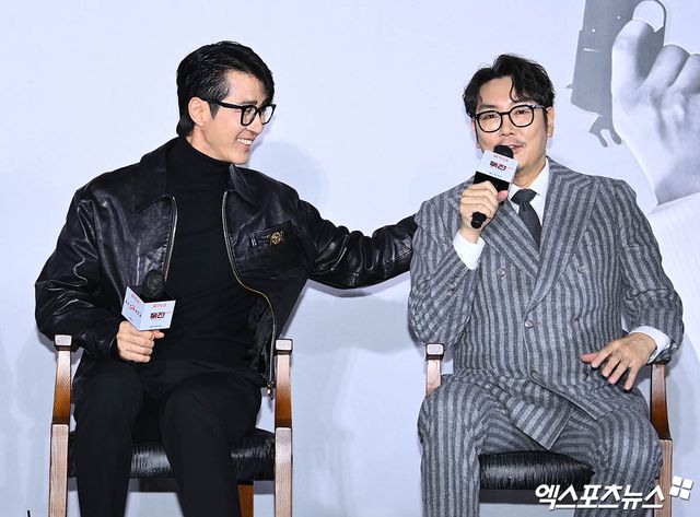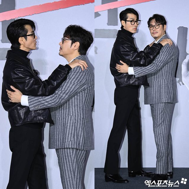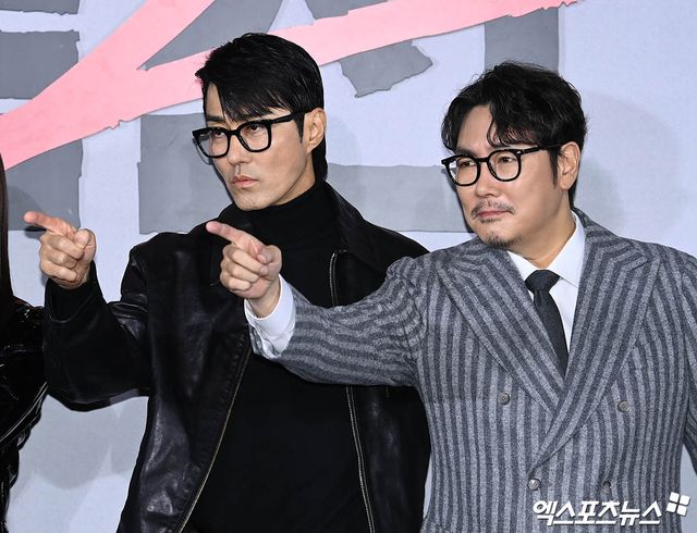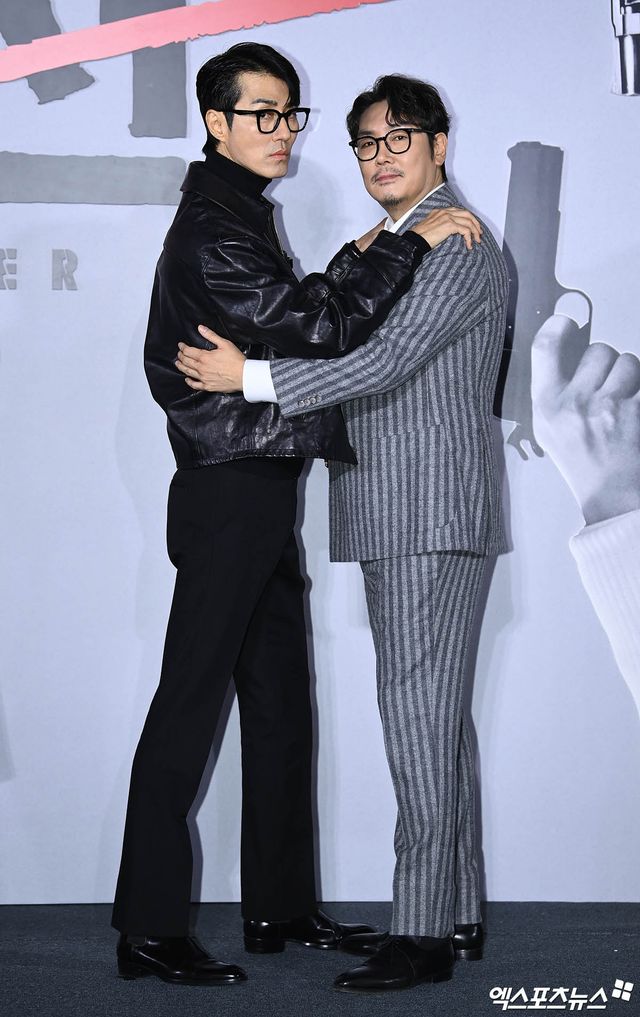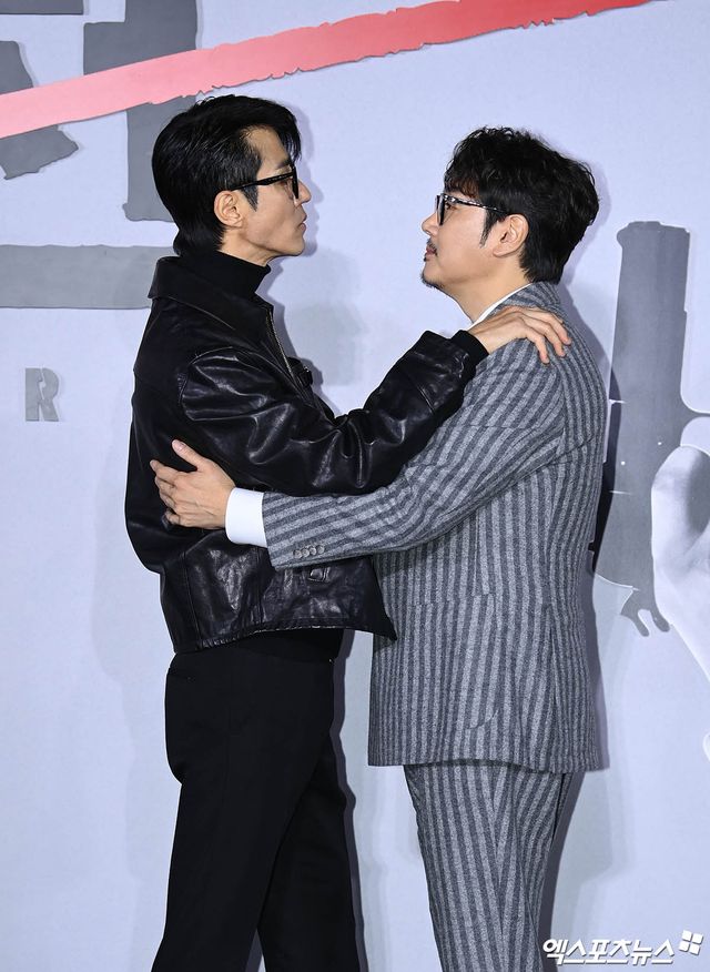 이날 제작보고회에 참석한 배우 차승원, 조진웅이 포토타임을 갖고 있다.