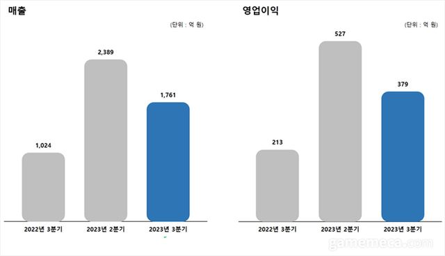 3분기 실적을 견인한 것은 올해 1월 국내에 출시한 라그나로크X: 넥스트 제너레이션과 4월에 동남아에 발매한 라그나로크 오리진이다. 이를 토대로 그라비티 모바일게임 매출은 전년 동기보다 95.7% 늘어난 1,555억 원이다.