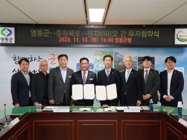 이번 협약에 따라 영동군과 천지바이오는 긴밀한 협조관계를 구축해 지역경제 활성화와 산업발전에 힘을 모으기로 했다.