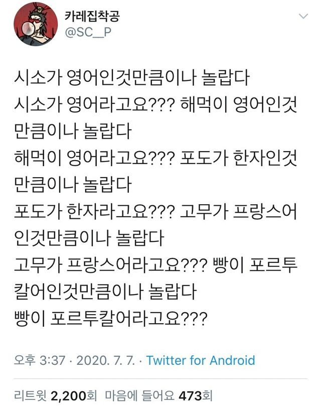 신기한 언어를 본 누리꾼들은 "목업이 영어인 거 알아? mock-up 실물 모형이라는 뜻으로 사용함" "마세이랑 바리깡이 불어인 게 빠졌네" 등의 반응을 보였습니다.