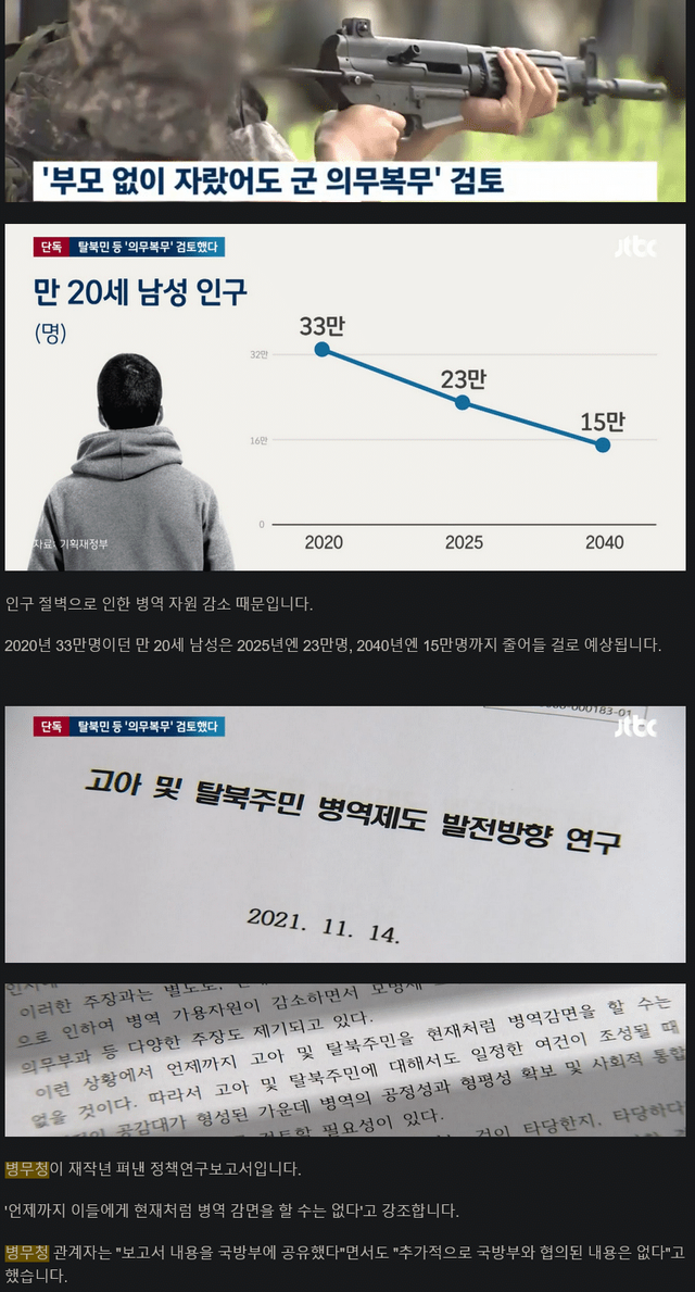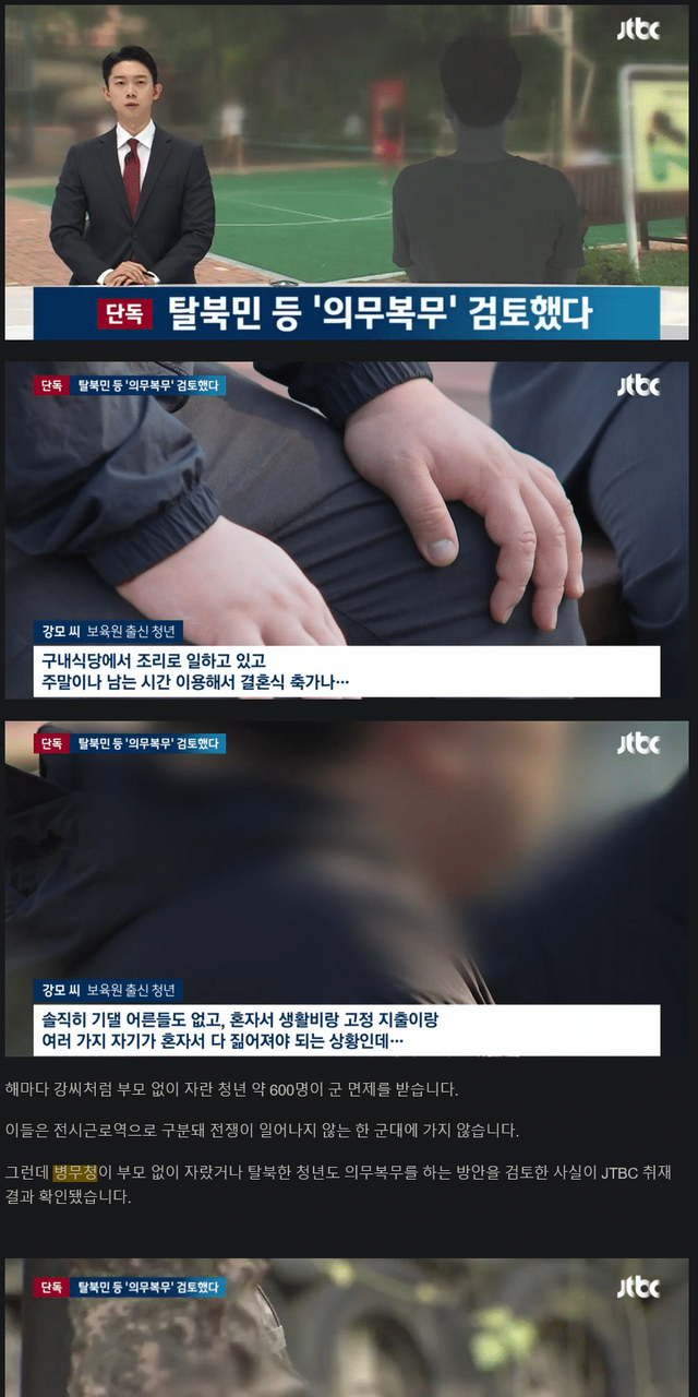 부모없이자란 고아, 탈북후 정착한 탈북민까지 ‘의무복무’ 검토한 ‘병무청’,,