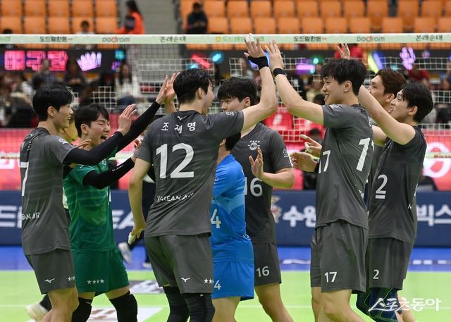 다행히 또 다른 아웃사이드 히터 정한용이 빈 자리를 충실히 메워주고 있다. 세트스코어 3-1로 이긴 11일 KB손해보험과 원정경기에서 정한용은 트리플크라운(후위공격·서브·블로킹 각 3회 이상 성공)과 함께 팀 내 최다인 22점으로 몹시 인상적인 활약을 펼쳤다. 여기에 부상에서 복귀한 곽승석도 나름의 역할을 해주고 있다. 외국인선수에게 팀 공격의 대부분을 전담시키는 다른 팀들과는 분명히 다른 행보를 보여주고 있는 대한항공이다.