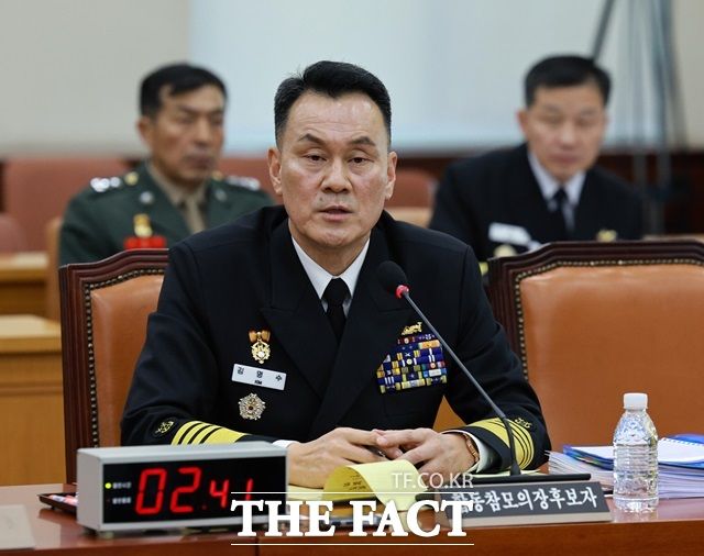 김명수 합동참모본부 의장(합참의장) 후보자가 15일 오전 서울 여의도 국회에서 열린 인사청문회에서 의원 질의에 답변하고 있다. /뉴시스