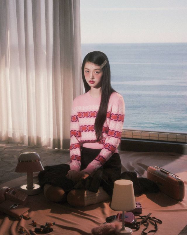 핑크 니트 스웨터와 헤어핀 모두 샤넬